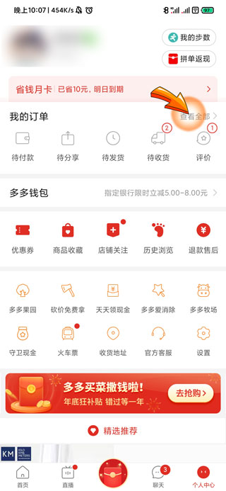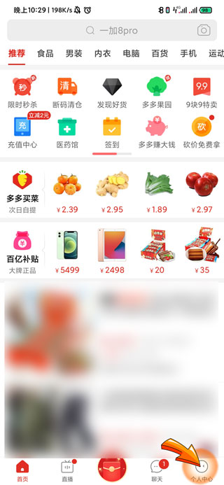 1、拼多多查看已买商品首先需要打开拼多多APP,点击页面右下角的“个人中心”选项。