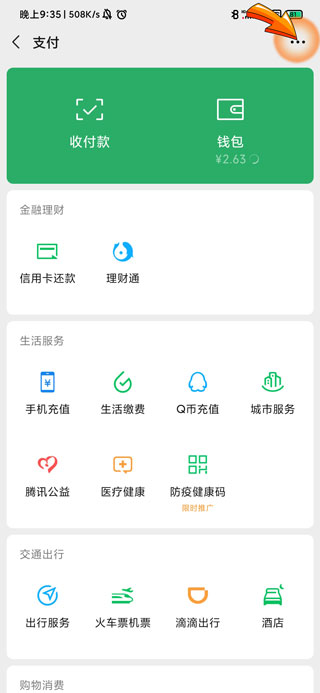 3、进入支付页面后,点击页面右上角的“三点”符号。