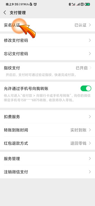 4、再点击支付管理页面顶部的“实名认证”选项。