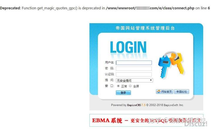帝国cms7.5配置PHP7.4登陆后台报错解决方法