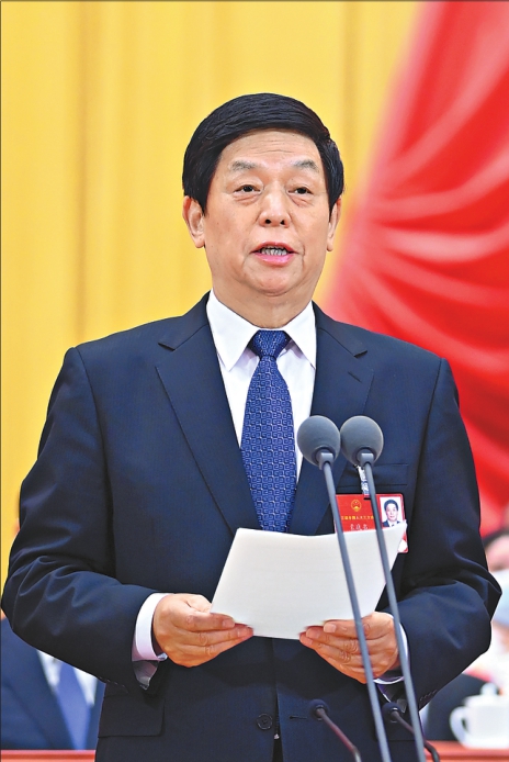 大会主席团常务主席、执行主席栗战书主持大会。新华社记者申宏摄