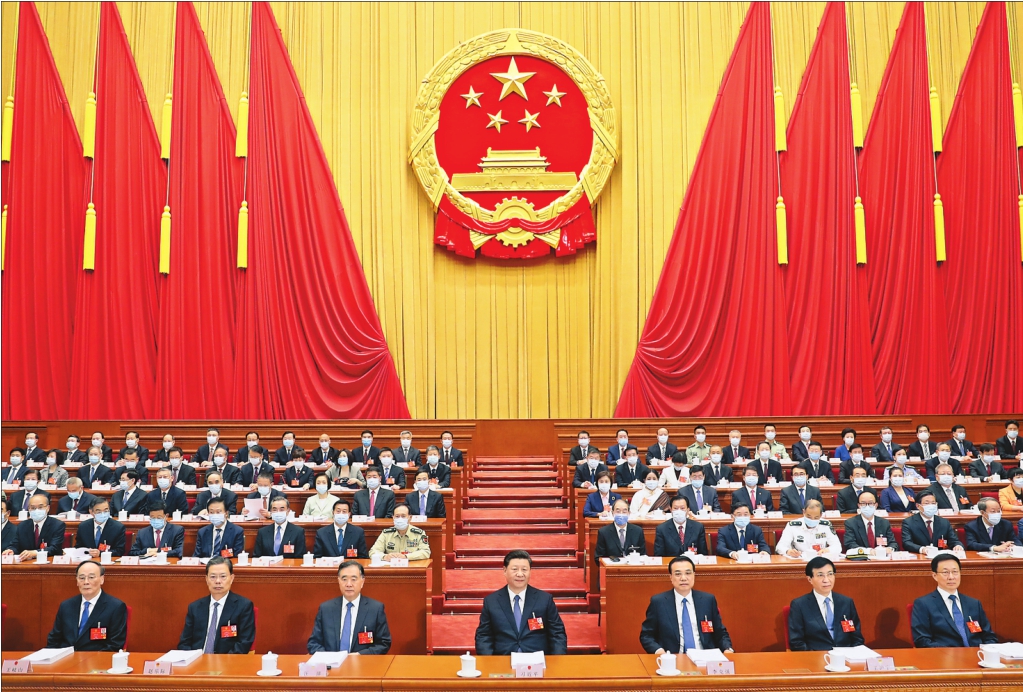 习近平、李克强、汪洋、王沪宁、赵乐际、韩正、王岐山和大会主席团成员在主席台就座。